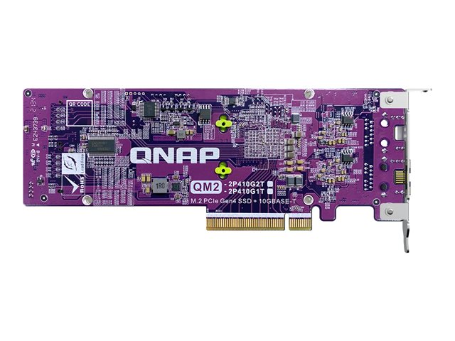 QNAP QM2-2P410G1T - Kontrollerkort - M.2 - PCIe 4.0 x4 (NVMe) - låg profil - PCIe 4.0 x8 - för QNAP TDS-h2489FU-4309Y-64, h2489FU-4314, h2489FU-4314-128, TS-h1290, TVS-h1288
