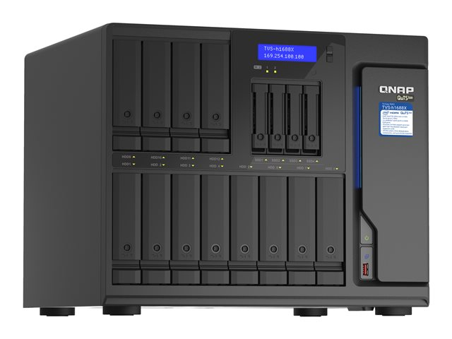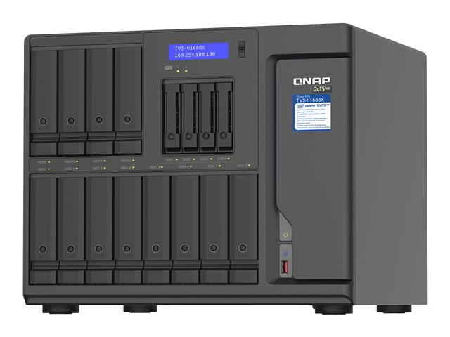 | Funktioner | ALERT-notifiering, stöd för LDAP, VLAN-stöd, WOL, Syslog-stöd, ACL-stöd, iTunes-server, Jumbo Frames-support, DLNA Media Server, Apple Time Machine-kompatibel, VPN-server, Apple AirPlay, antivirusskydd, Link Aggregation, stöd för Google Drive, stöd för Chromecast, porttrunkering, stöd för Microsoft Azure, stöd för Amazon S3, stöd för Amazon Glacier, Qsirch, deduplikation (volym och LUN), ögonblicksbild (mapp och LUN), komprimering (volym och LUN), inbyggd hårdvarutranskodning |