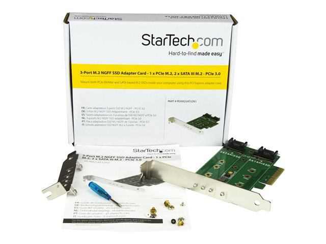 StarTech.com 3-port M.2 SSD (NGFF) Adapter Card - Supports 1x PCIe (NVMe) M.2 SSD, 2x SATA III M.2 SSDs - PCIe 3.0 Adapter (PEXM2SAT32N1) - Gränssnittsadapter - M.2 - M.2 Card / SATA 6Gb/s - PCIe 3.0