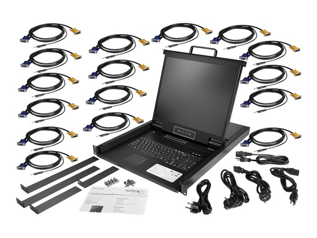 StarTech.com 16-Portars KVM-konsol för serverrack - 19 tum - 1U - KVM-konsol med omkopplare för tangentbord/video/mus - 16 portar - PS/2, USB - US - 19" - kan monteras i rack - 1280 x 1024 - 250 cd/m² - 1000:1 - VGA - svart - 1U
