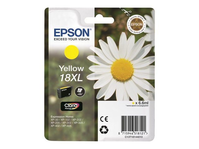 Epson 18XL - XL - gul - original - bläckpatron - för Expression Home XP-212, 215, 225, 312, 315, 322, 325, 412, 415, 422, 425 C13T18144010