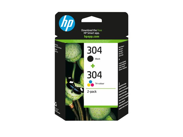 HP 304 - 2-pack - svartfärgad, färg (cyan, magenta, gul) - original - bläckpatron - för AMP 130; Deskjet 26XX, 37XX; ENVY 50XX 3JB05AE