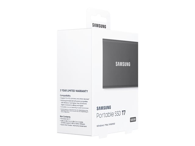 Samsung T7 MU-PC500T - SSD - krypterat - 500 GB - extern (portabel) - USB 3.2 Gen 2 (USB-C kontakt) - 256 bitars AES - Titan gray