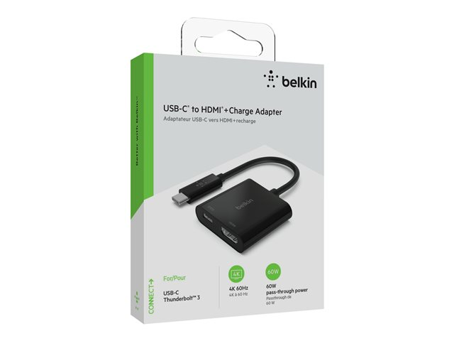 Belkin USB-C to HDMI + Charge Adapter - Videokort - USB-C hane till HDMI, USB-C (enbart ström) hona - svart - stöd för 4K, USB Power Delivery (60W)