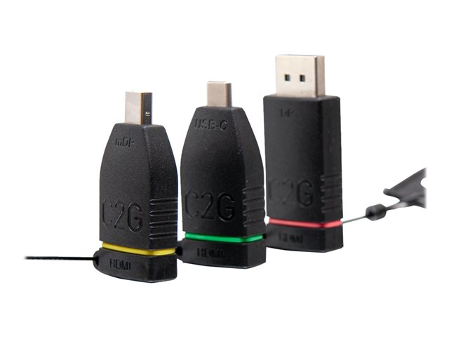 C2G Retractable Table Box Mount 4K HDMI Adapter Ring with Color Coded Mini DisplayPort, DisplayPort, and USB-C - Videoadaptersats - svart - stöd för 4K
