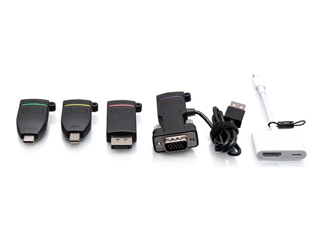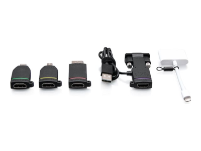 C2G Retractable Table Box Mount 4K HDMI Adapter Ring with Color Coded Mini DisplayPort, DisplayPort, USB-C, Lightning, and VGA - Videoadaptersats - svart - stöd för 4K