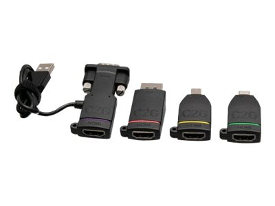 C2G Retractable Universal Mount 4K HDMI Adapter Ring with Color Coded Mini DisplayPort, DisplayPort, USB-C, and VGA - Videoadaptersats - svart - stöd för 4K C2G29892