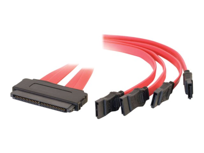 C2G Internal SAS 32-pin (SFF-8484) to Four Serial ATA (SATA) Cable - SATA/SAS-kabel - Serial ATA 150/300/600/ SAS 6Gbit/s - 4-vägs - 32-pin 4i MultiLane (hona) till SATA (hona) - 1 m - röd