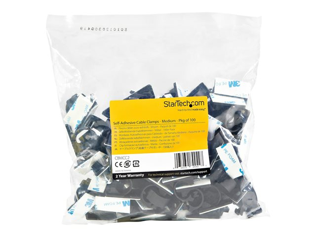 StarTech.com 100 självhäftande kabelhanteringsclips Svart - Nätverk/Ethernet/kontorsbord/datorsladdorganiserare - Självfästande kabel-/ledningshållare - Självhäftande nylonklämma brandklassad enligt UL/94V-2 - Kabelklämmor - svart - TAA-kompatibel (paket om 100) CBMCC2