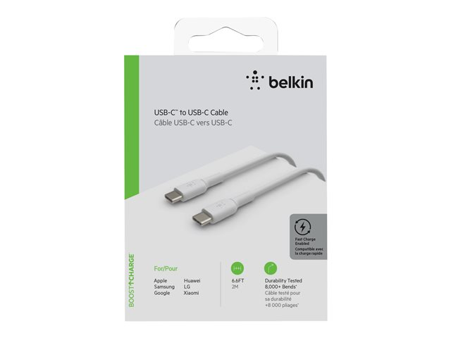 Belkin BoostCharge - USB-kabel - USB-C (hane) till USB-C (hane) - 2 m - vit CAB003BT2MWH