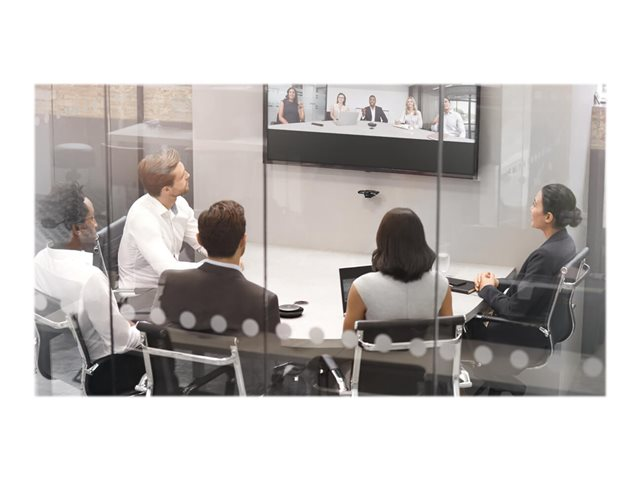 • Vittomfattande möten med panoramisk 4K-video, där tre kameror med 13 megapixlar och patenterad realtidsbaserad videosammanfogning används för att ge en 180°-vy av rummet