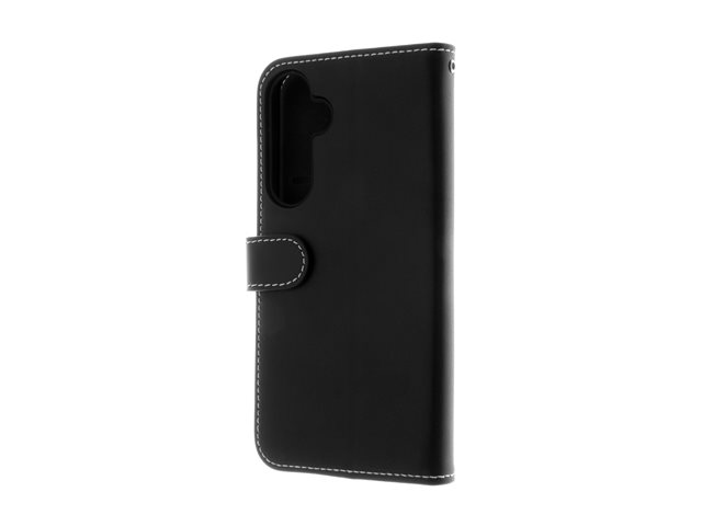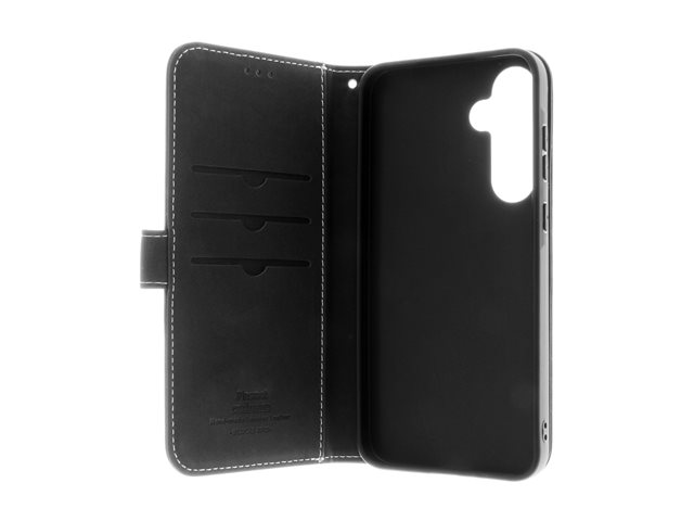 Insmat Exclusive - Baksidesskydd för mobiltelefon - genuint läder, kartong+papper+aluminiumfolie, termoplastisk polyuretan (TPU), bomullssömmar - svart - för Samsung Galaxy A35 650-3230