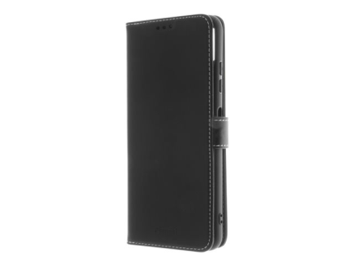 Insmat - Vikbart fodral för mobiltelefon - genuint läder, termoplastisk polyuretan (TPU), polyuretanklädsel - svart, galvaniserad bronsring - för Samsung Galaxy A22 5G 650-2974