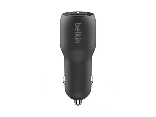 Belkin BoostCharge Dual Charger - Strömadapter för bil - 24 Watt - 4.8 A - 2 utdatakontakter (USB) - på kabel: USB-C - svart