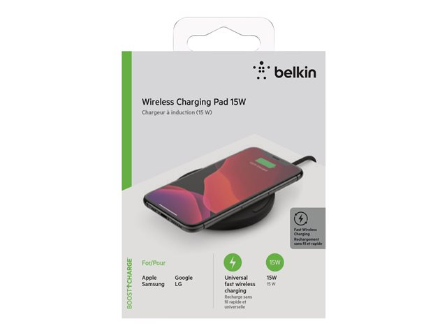 Belkin BoostCharge - Trådlös laddningsplatta + växelströmsadapter - 15 Watt - QC 3.0 - svart WIA002VFBK