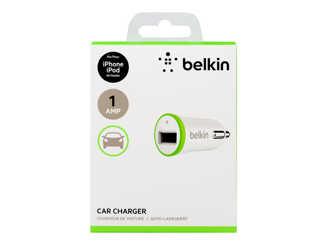 Belkin Micro Car Charger - Strömadapter för bil - 1 A (USB) - vit, grön F8J044CWWHT