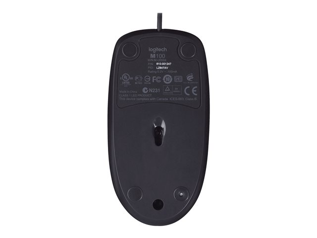 Logitech M100 - Mus - fullstorlek - höger- och vänsterhänta - optisk - 3 knappar - kabelansluten - USB - svart