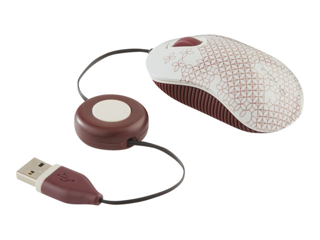Targus Compact Laptop - Mus - höger- och vänsterhänta - optisk - 3 knappar - kabelansluten - USB - vit, röd