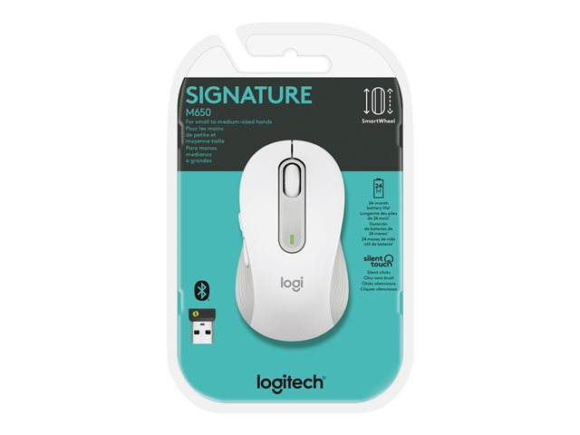Logitech Signature M650 - Mus - optisk - 5 knappar - trådlös - 2.4 GHz, Bluetooth - Logitech Logi Bolt USB-mottagare - offwhite