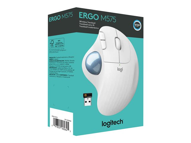 Logitech Ergo Series ERGO M575 - Styrkula - optisk - 5 knappar - trådlös - Bluetooth 5.0 LE, 2.4 GHz - trådlös USB-mottagare - offwhite