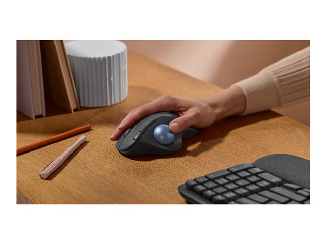Arbeta i din komfortzon med den trådlösa styrkulan Ergo M575S, certifierad av ergonomer för att hålla handen och underarmen avslappnade - nu med tysta klick.