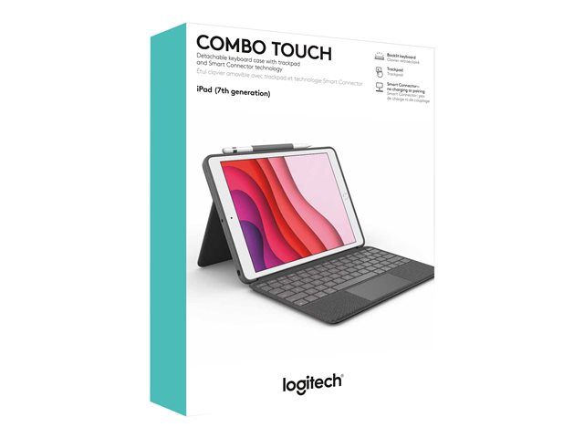 Logitech Combo Touch - Tangentbord och foliefodral - med pekdyna - bakgrundsbelyst - Apple Smart connector - AZERTY - fransk - grafit - för Apple 10.2-inch iPad (7:e generation, 8:e generation, 9:e generation)