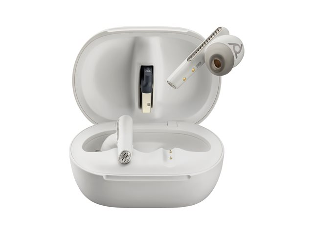 HP Poly Voyager Free 60+ UC M - True wireless-hörlurar med mikrofon - inuti örat - Bluetooth - aktiv brusradering - USB-C via Bluetooth-adapter - sandvit - Certifierad för Microsoft-teams