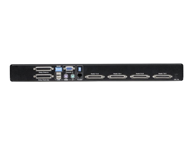 | Gränssnitt | 8 x KVM 50 pin Centronics 2 x stackenhet för nätverk DB-25 1 x RJ-11 hantering 1 x tangentbord (PS/2) 1 x mus (PS/2) 1 x tangentbord (USB) Type A 1 x mus (USB) Type A 1 x VGA HD-15 |