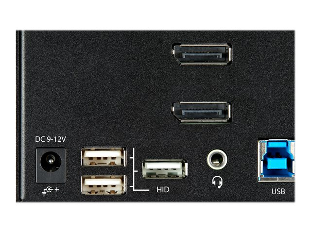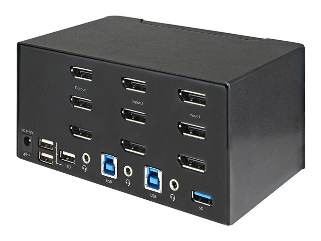 StarTech.com 2-ports DisplayPort KVM-switch för tre skärmar - 4K 60 Hz UHD HDR - Desktop DP 1.2 KVM med 2 portar USB 3.0-hubb (5 Gbit/s) och 4x USB 2.0 HID-portar, ljud - Snabbtangenter för omkoppling - TAA - Omkopplare för tangentbord/video/mus/ljud - 2 x KVM/ljud - skrivbordsmodell - TAA-kompatibel