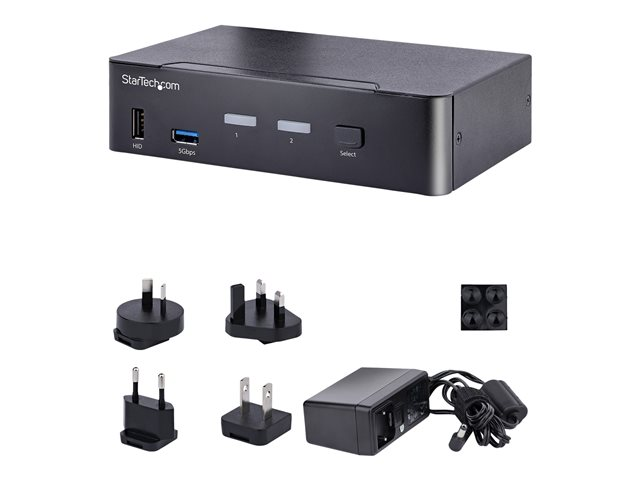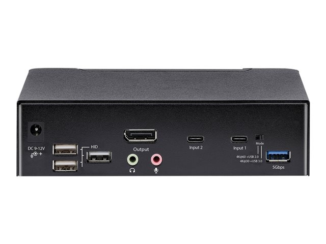 StarTech.com USB C KVM Switch, 2 Port DisplayPort KVM w/ 4K 60Hz UHD HDR Video, 3.5mm Audio, USB Type C KVM Switch, 4x USB HID and 2x USB A 3.2 Gen 1 5Gbps Hub, Thunderbolt 3/4 Compatible - Hot Key Switching (SV231DPUCA) - Omkopplare för tangentbord/video/mus/ljud/USB - 2 x KVM/ljud/USB - skrivbordsmodell - TAA-kompatibel SV231DPUCA