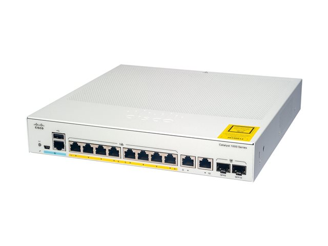 Cisco Catalyst 1000-8FP-2G-L - Switch - Administrerad - 8 x 10/100/1000 (PoE+) + 2 x kombinations-Gigabit SFP (upplänk) - rackmonterbar - PoE+ (120 W) C1000-8FP-2G-L