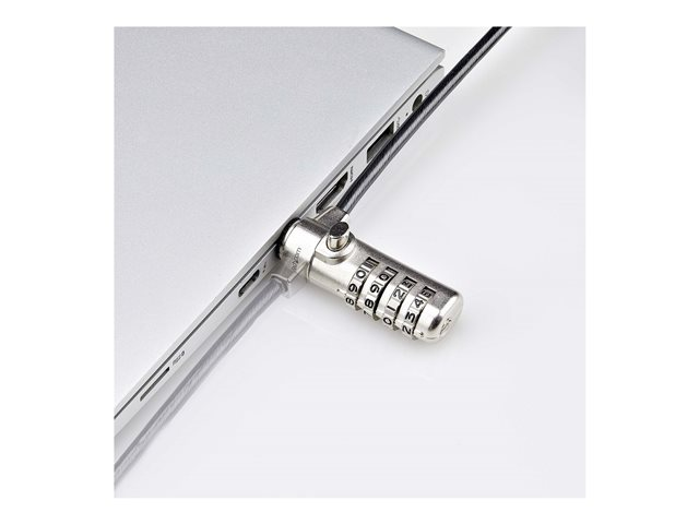 StarTech.com Slim Lock K-Slot Compatible, 6.6ft Combination Locking Cable - Lås för säkerhetskabel - svart & silver - 2 m - TAA-kompatibel