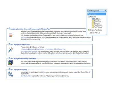 The Intelligent Management Center (IMC) Quality of Service Manager (QoSM) enhances visibility and control over QoS configurations on network devices. By providing a rich set of QoS device and configuration management functions, and ignoring differences in the QoS configurations of multiple devices, it enables administrators to focus on QoS service planning, and the most economical and effective use of network resources.