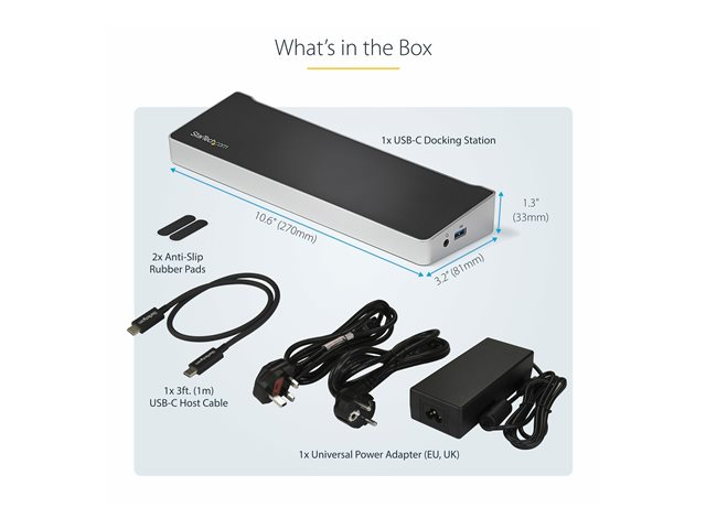 | Standarder som följs | FCC, RoHS, WEEE, USB Battery Charging Specification Rev. 1.2, USB Power Delivery 2.0, DisplayPort 1.2, UASP (USB Attached SCSI Protocol) |