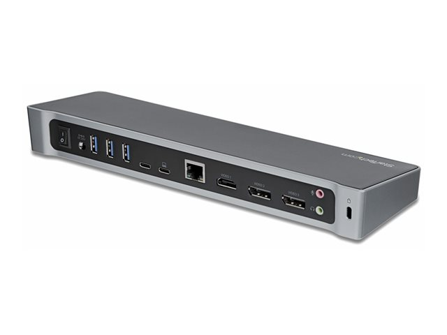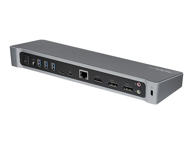 | Gränssnitt | 3 x SuperSpeed USB 3.0 - 9-stifts USB typ A 2 x USB-C - 24 pin USB-C 1 x bildskärm / video - HDMI - 19-stifts HDMI typ A 2 x bildskärm / video - DisplayPort - 20-stifts DisplayPort 1 x nätverk - 10Base-T/100Base-TX/1000Base-T - RJ-45 1 x hörlurar - minitelefon 3,5 mm, 4-poligt 1 x mikrofon - minitelefon 3,5 mm 1 x högtalare - minitelefon 3,5 mm 1 x SuperSpeed USB 3.0 with Fast Charging - 9-stifts USB typ A |