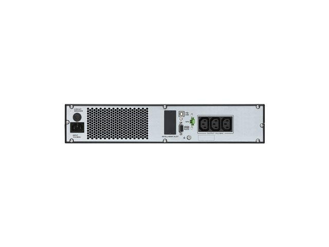 | Egenskaper | Horisontell orientering, Hörbart larm, nödavstängning, LCD-bildskärm, intern förbikoppling, Eco-Mode, generatorkompatibel, intelligent batterihantering, dubbel konvertering, larm vid lågt batteri, överbelastningslarm |