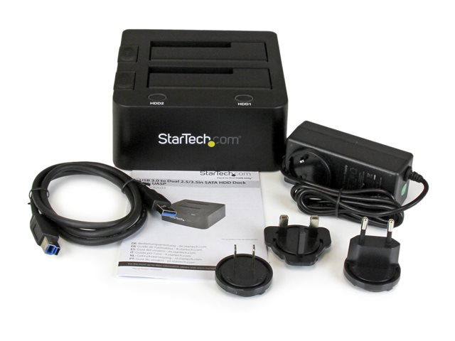 StarTech.com Dual-Bay USB 3.0 to SATA Hard Drive Docking Station, USB Hard Drive Dock, External 2.53.5 SATA IIIIII, SSDHDD Docking Station, Hot-Swap Hard Drive Bay - Top-Loading - Kontrollerkort - 2.5", 3.5" - SATA 6Gb/s - USB 3.0 - svart - för P/N: SVA12M5NA