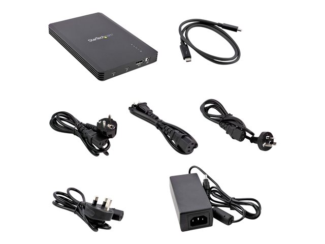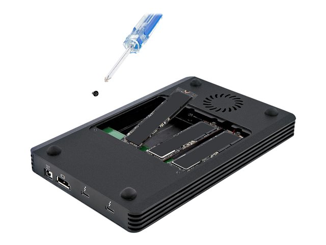 StarTech.com 4 Bay Thunderbolt 3 NVMe Enclosure, For M.2 NVMe Solid State Drives, 1x DisplayPort Video & 2x TB3 Downstream Ports, Up to 40Gbps, 72W Power Supply - 4 Bay M.2 SSD External Hard Drive Enclosure (M2E4BTB3) - Förvaringslåda - M.2 - M.2 NVMe Card / PCIe (NVMe) - Thunderbolt 3 - svart