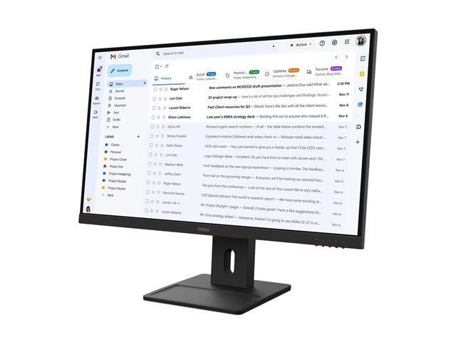 Egenskaper | Integrerad kabelhantering, nästan kantlös på tre sidor, 8-bitars (6-bitars + FRC) färgdjup, Naturligt låg blåljusteknik, 20.5 mm list (underdel), 2.3 mm avfasning (sida), 2,6 mm bezell (övre) |