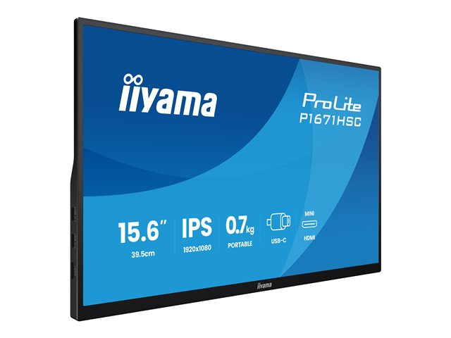 The iiyama ProLite P1671HSC-B1 is a versatile 15.6-inch monitor designed for a variety of applications. With a native resolution of 1920 x 1080, it delivers sharp image clarity and vibrant colors supported by 16.7 million colors. The IPS technology enhances viewing angles with +89/-89 degrees both horizontally and vertically, making it suitable for collaborative environments or for sharing screens with others. Featuring a matte display screen coating, it minimizes reflections and glare for improved visibility in well-lit settings. Equipped with multiple connectivity options including USB-C, Mini HDMI, and VGA, this monitor offers flexibility for various devices. The high frame rate control (Hi-FRC) and fast response time of 3 ms ensure smooth visuals, making it ideal for dynamic content viewing. The energy-efficient design, consuming only 10 kWh/1000 h in SDR mode, aligns with eco-friendly standards, certifying compliance with RoHS, WEEE, and ERP. This monitor's tilt adjustment feature provides optimal positioning for a comfortable viewing experience.