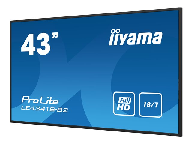 iiyama ProLite LE4341S-B2 - 43" Diagonal klass (42.5" visbar) LED-bakgrundsbelyst LCD-skärm - digital skyltning - 1080p 1920 x 1080 - svart ram med blank yta LE4341S-B2