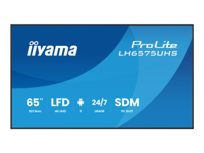 iiyama ProLite LH6575UHS-B2AG - 65" Diagonal klass (64.5" visbar) LED-bakgrundsbelyst LCD-skärm - digital skyltning - med inbyggd mediespelare, SDM Slot PC - 4K UHD (2160p) 3840 x 2160 - svart (ram), matt finish LH6575UHS-B2AG