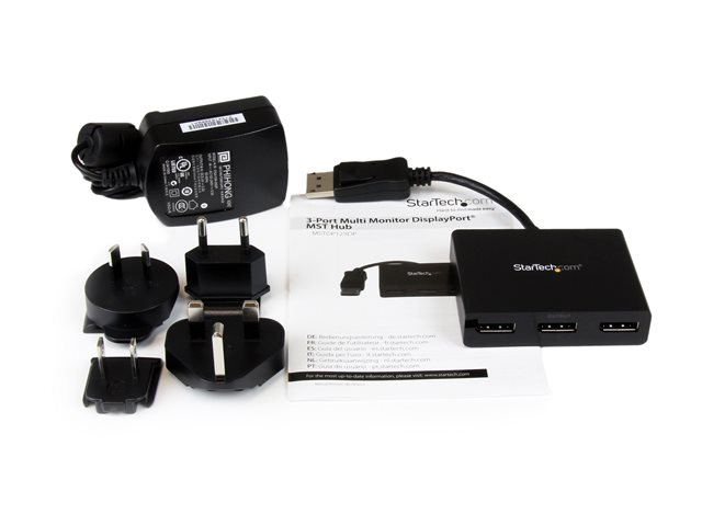 StarTech.com 3-ports multi-bildskärmsadapter - DisplayPort 1.2 MST-hubb till dubbel 4K 30 Hz och 1x 1080p - Video-splitter för utökat skrivbordsläge endast på Windows-datorer - DP till 3x DP-skärmar - Linjedelare för video - skrivbordsmodell - AC 100/230 V - för P/N: SV231DPU34K, SVA5N3NEUA