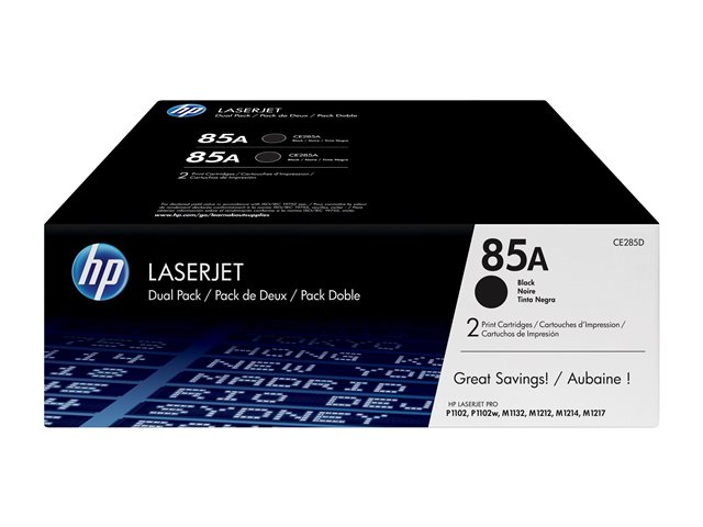 HP 85A - 2-pack - svart - original - LaserJet - tonerkassett (CE285AD) - för LaserJet Pro M1132 MFP, M1212nf MFP, M1217nfw MFP, P1102, P1102s, P1102W, P1109, P1109W