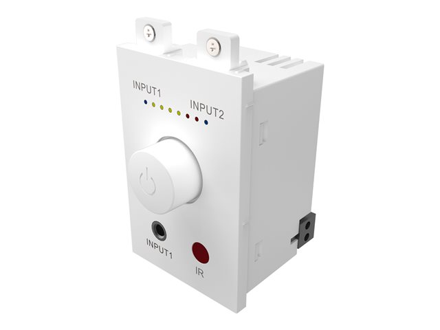 | Inkluderade tillbehör | Bakre dosa för ett uttag, ram för ett uttag, 2 ingångskablar (1,5 m), 2 högtalarkablar (5 m), fjärrkontroll |
