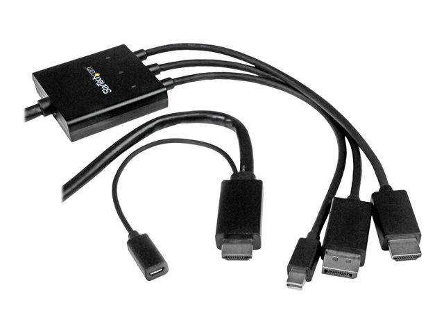 StarTech.com 2m 6 ft HDMI, DisplayPort or Mini DisplayPort to HDMI Converter Cable - HDMI, DP or Mini DP to HDMI Adapter Cable (DPMDPHD2HD) - Videokort - HDMI, DisplayPort, Mini DisplayPort hane till HDMI, Mikro-USB typ B (endast ström) - 2 m - svart - stöd för 4K