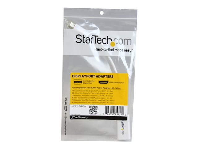 StarTech.com Mini DisplayPort till HDMI-adapter - Aktiv mDP till HDMI videokonverterare - 4K 30 Hz - Mini DP eller Thunderbolt 1/2 Mac/PC till HDMI monitor/TV/bildskärm - mDP 1.2 till HDMI-adapterdongel - Vit - Videokort - Mini DisplayPort hane till HDMI hona - 15 cm - vit - aktiv, 4K30 Hz (3840 x 2160) stöd MDP2HD4KSW