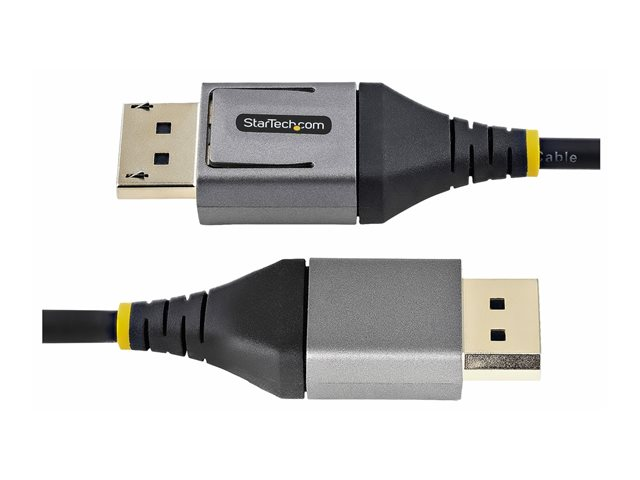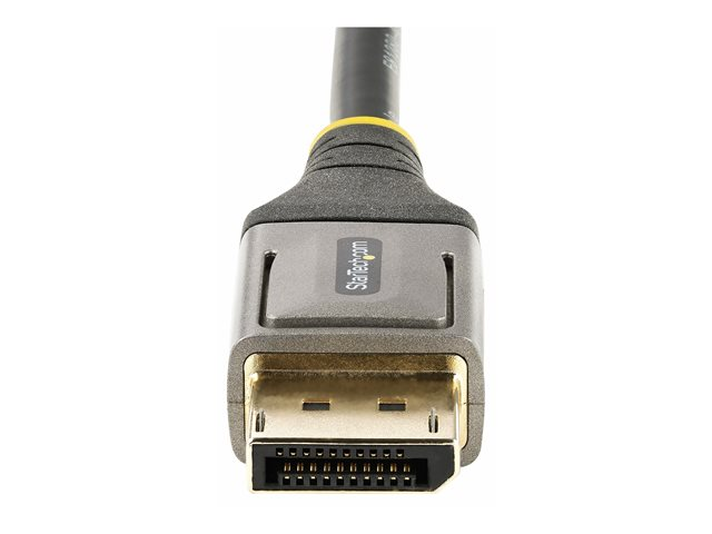 | Egenskaper | Halogenfri, formpressad, passiv kabel, 8K60 Hz (7680 x 4320) stöd, 4K120 Hz (3840 x 2160) stöd, HDR10-stöd, korrosionsresistenta kontakter, klammer, EMI-skydd, Display Stream Compression 1.2 (DSC), DisplayPort Multi-Stream Transport (MST), 32 ljudkanaler, High Bit Rate 3 (HBR3), stöd till 7.1 ljudkanal, klarar mer än 5000 böjningar, Delprovtagning från Chroma (4:4:4), 32,4 Gb datahastighet, Forward Error Correction, 19 ledare, stöd till 5,1 ljudkanal, daisy-chaining |