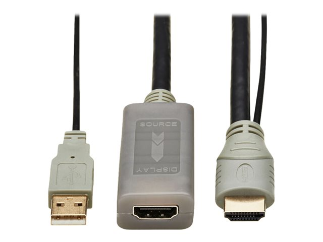 Eaton Tripp Lite Series HDMI Extension Cable with Active Repeater (M/F), 4K 60 Hz, HDR, 4:4:4, HDCP 2.2, 10 ft. (3.1 m), TAA - HDMI-förlängningskabel med Ethernet - TAA-kompatibel - USB, HDMI hane till HDMI hona - 3.1 m - grå, svart - 4K60Hz (3840 x 2160) stöd, aktiv förstärkare, 3D-videostöd, guldpläterade kontakter
