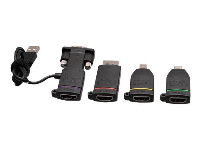 C2G Universal 4K HDMI Adapter Ring with Mini DisplayPort, DisplayPort, USB C, Lightning, and VGA - M/F - Videoadaptersats - svart - stöd för 4K C2G29888